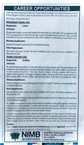 साथै, ट्रेनी एसीस्टेन्टको लागि पनि कमर्स, म्यानेजमेन्ट, इकोनोमिक्स, लिगल, आइटी लगायतका विषयमा स्नातक तह उत्तिर्ण गरेको हुनुपर्ने छ ।