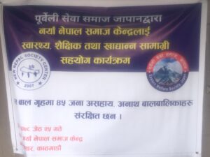 पूर्वेली समाज जापानले केन्द्रलाई एक महिनालाई पुग्ने गरि स्वास्थ्य सामग्री र खाद्यन्य सहयोग गरेको हो ।
