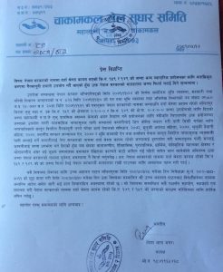 काठमाडौं । सरकारी जग्गा फिर्ता गर्न चाकामकल टोल सुधार समितिले अपिल गरेको छ ।